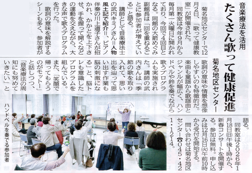 音楽療法を活用 たくさん歌って健康促進 菊名地区センター